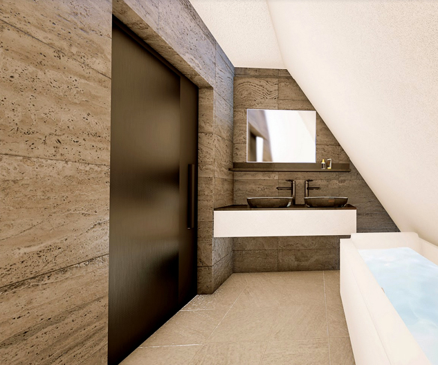 Znajduje się obok kuchni i salonu. Zachowuje parametry niezbędne do użytkowania podstawowych części wyposażenia łazienki. Daje możliwość dopasowania ich do własnego gustu użytkownika.